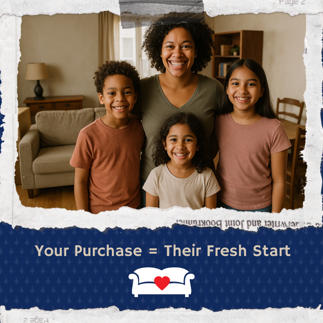 Every purchase contributes 50¢ of every dollar to the Furniture Bank, helping us furnish hope for families in need.